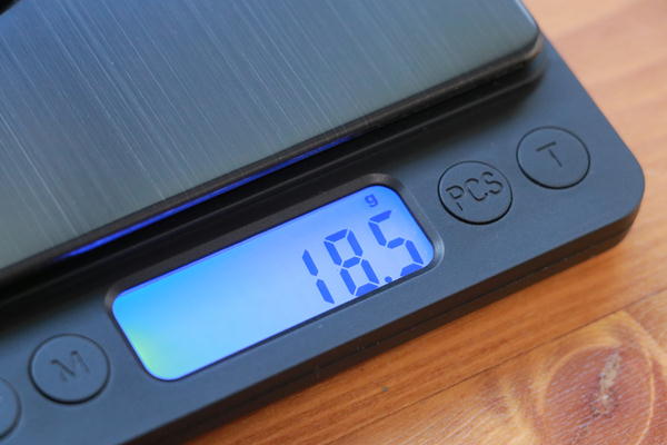 精度は±0.2gと確実にその数値ということは言えないものの、10.0gと10.8gが違うということがわかるだけでも、ありがたい。より正確に測定で切ることに繋がります。